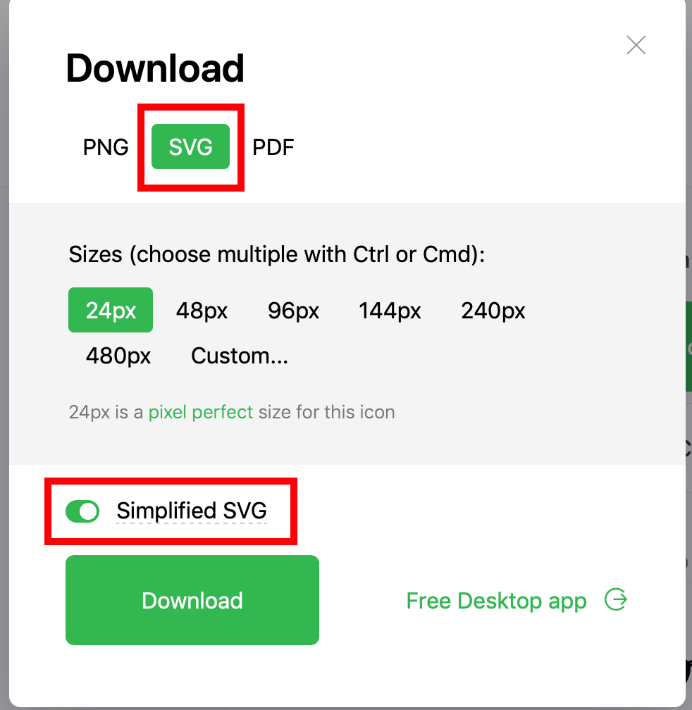 SVG를 눌러주시고 저 Simplified SVG를 꼭..on해줍니다.