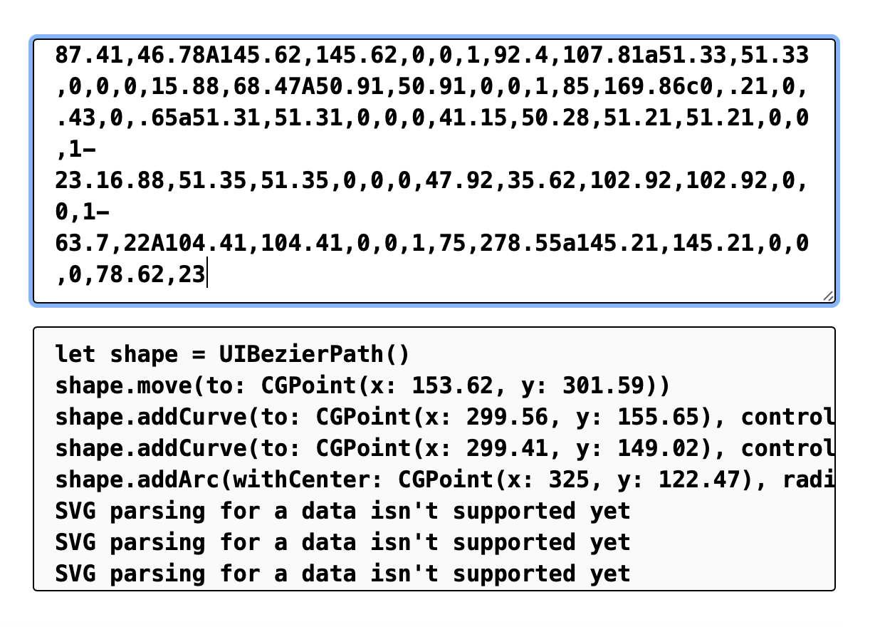 swiftvg – Convert SVG path data to a Swift 3 UIBezierPath