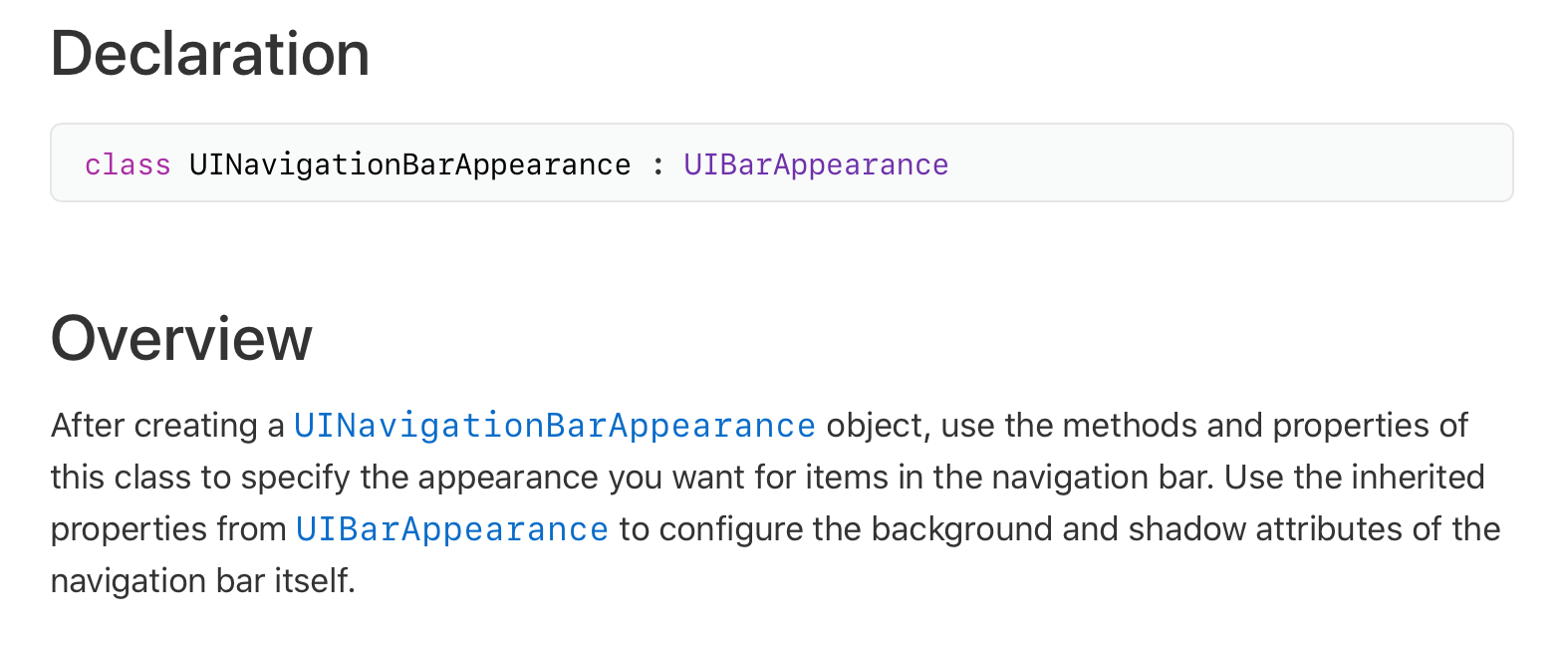 Overview에 보면, UINavigationBarAppearance객체를 만든다음에~~~