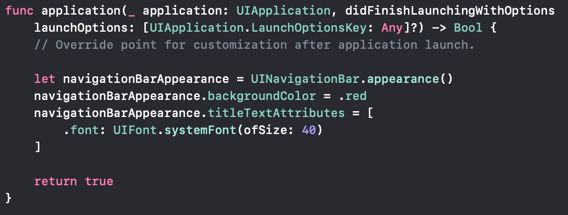 그냥 UINavigationBar.appearance()로 만들어줬죠.