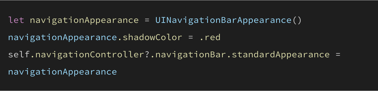 shadowColor가 nil이거나 UIColor.clear면 bar에 그림자가 표시되지 않지만,