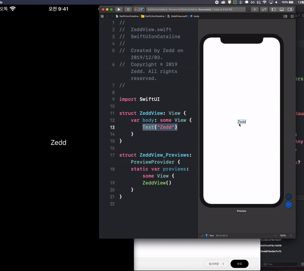 또한 Xcode는 Swift의 새 기능인 '동적 대체(Dynamic replacement)'를 사용하여 라이브 앱에서 직접 편집된 코드를 바꿀 수 있습니다.