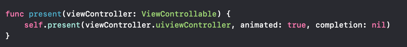그래서 ViewControllable의 UIViewController타입의 프로퍼티인 uiviewController를 넣어주는 겁니다..!!