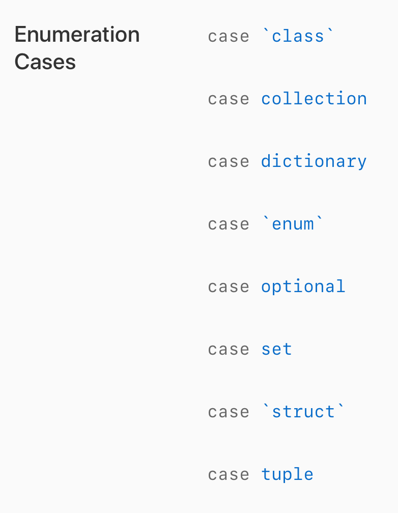 자, https://developer.apple.com/documentation/swift/mirror