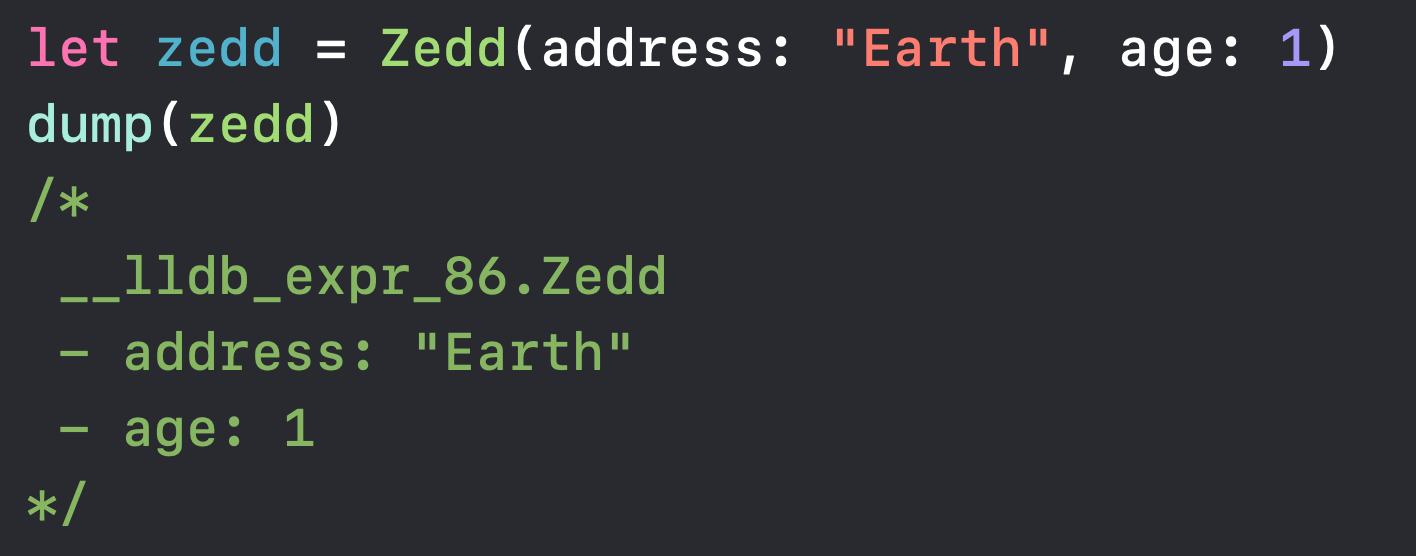 예를들어, 인스턴스를 dump(_:_:_:_:) 함수에 전달하면 해당 인스턴스의 런타임 내용을 렌더링 하는데 Mirror가 사용됩니다!