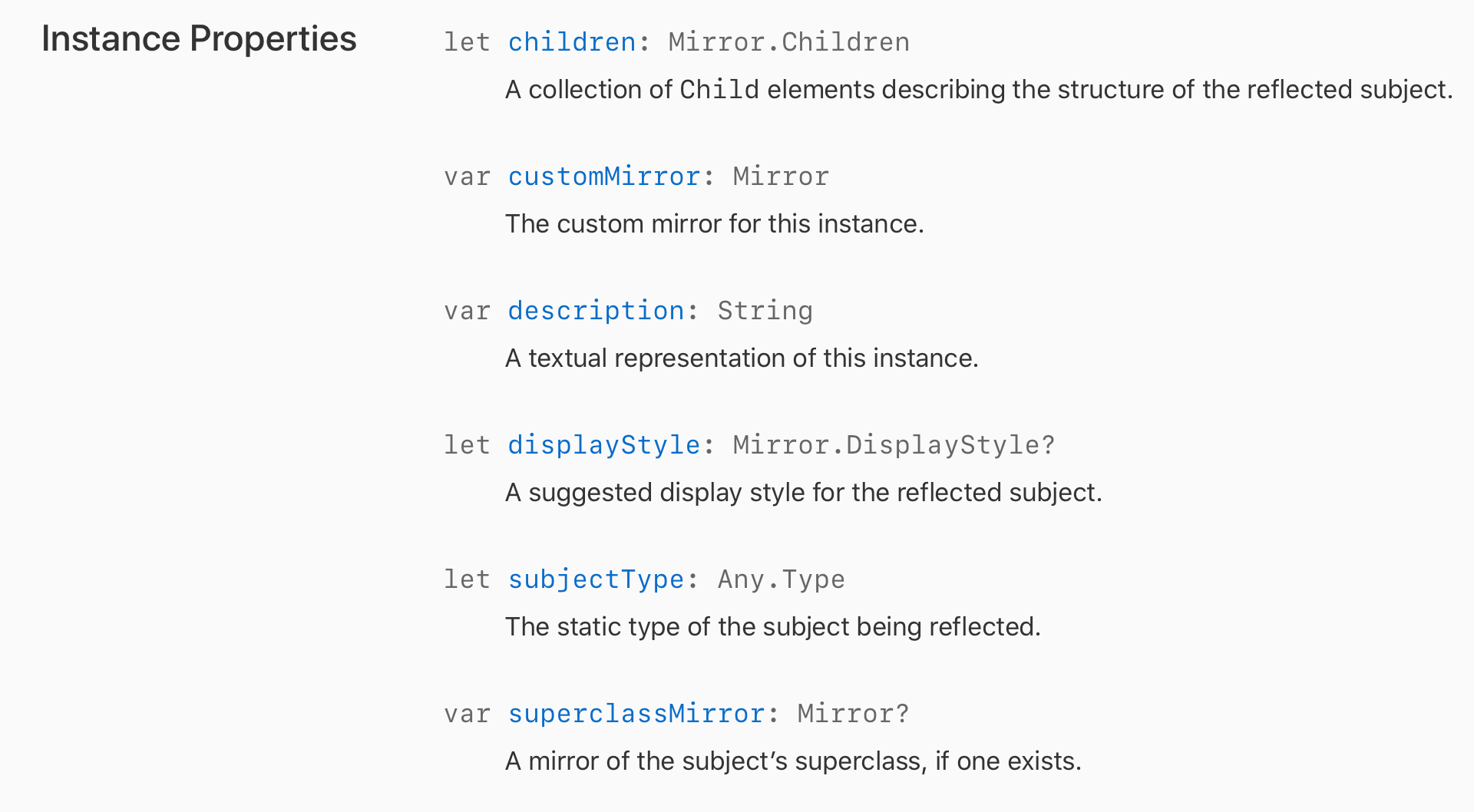 Mirror - Swift Standard Library | Apple Developer Documentation