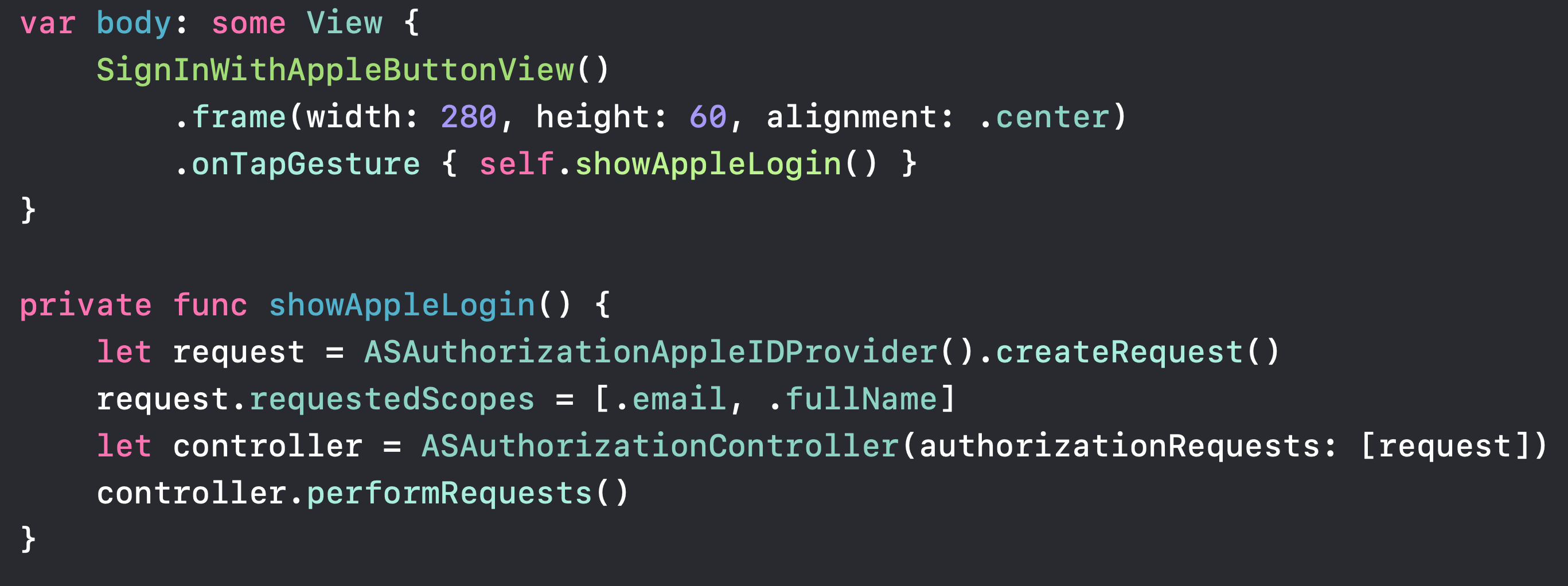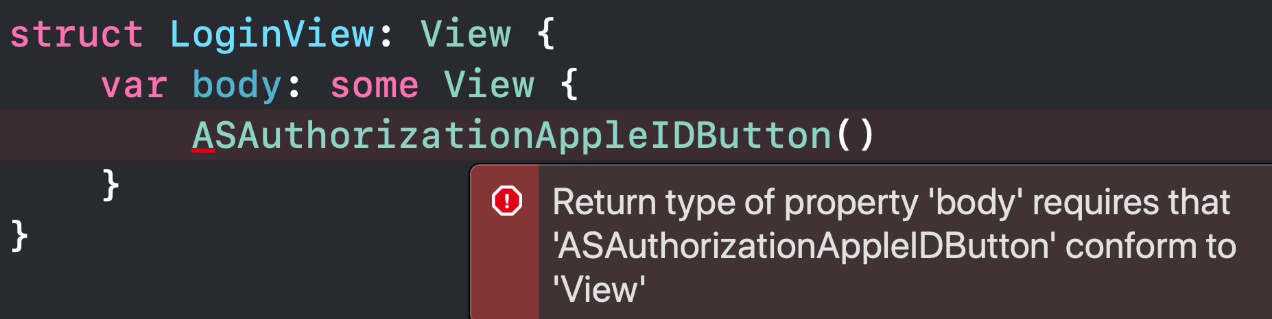 으ㅜㅁ...그럼 body안에서 ASAuthorizationAppleIDButton를 리턴하면 되겠군