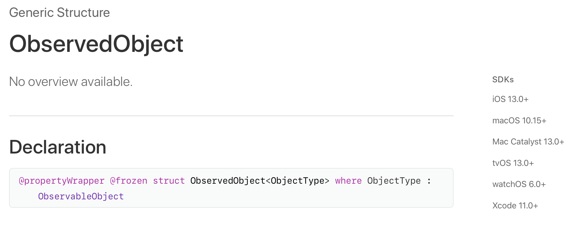 Generic Structure ObservedObject Declaration@propertyWrapper @frozen struct ObservedObject where ObjectType : ObservableObject