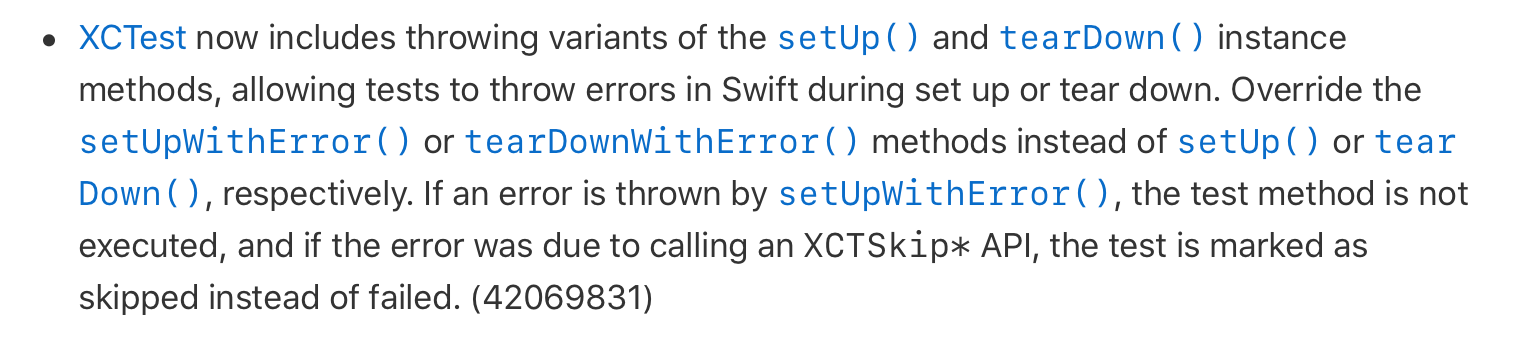 Xcode 11.4 ) setUpWithError / tearDownWithError, XCTSkipIf / XCTSkipUnless