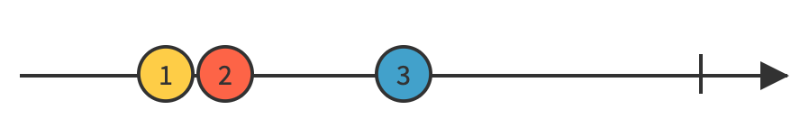 시간에 지남에 따라 이 Observable은 1, 2, 3을 발행하고 있네요..!!