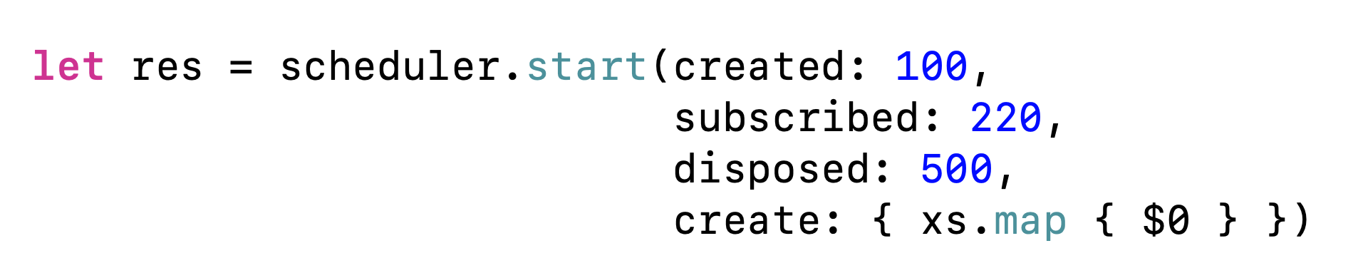 start의 구독 가상 시간과 dispose 되는 가상시간을 바꿀 수 있는데요. (create역시)